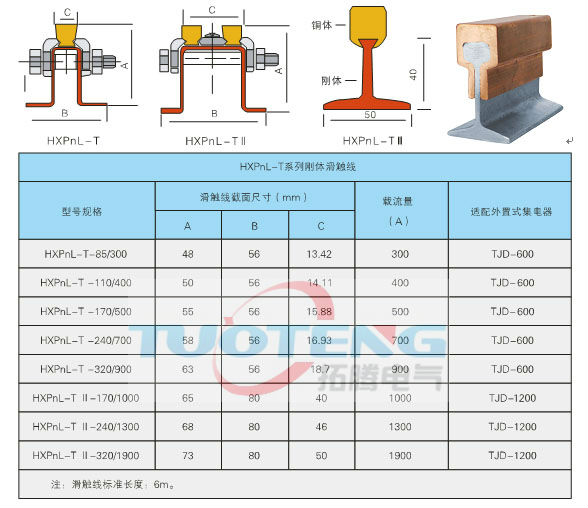 HXPnL-T系列化剛體滑觸線由銅導(dǎo)軌、導(dǎo)軌支架,絕緣子組件以胩外置式集電器等組件組合而成。由于該產(chǎn)品具有電流大、耐高溫、抗腐蝕等特點(diǎn),因此被廣泛地應(yīng)用于冶金、造船、港口裝卸等行業(yè)。