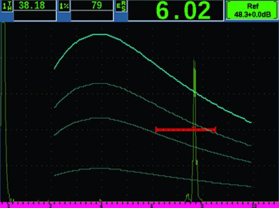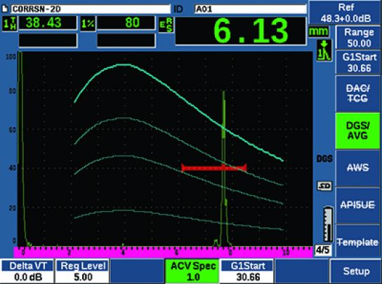 EPOCH 650 DGS/AVG特性 - 標(biāo)準(zhǔn)屏幕模式 全屏模式下明亮的VGA顯示 EPOCH 650型儀器具有全VGA(640 X 480像素)分辨率的顯示。其橫寬豎窄的面板設(shè)計(jì)優(yōu)化了出現(xiàn)在高質(zhì)量顯示屏上的A掃描圖像的大小及清晰度。這款儀器使用透反技術(shù),在光線較暗的室內(nèi)使用強(qiáng)背光,在陽光直射的情況下使用環(huán)境光作為假背光。無論在何種光線條件下,儀器的VGA屏幕都可顯示極為清晰的圖像。 儀器的全屏模式進(jìn)一步增強(qiáng)了屏幕鮮明清晰的顯示特性,可提供所有EPOCH系列探傷儀中最大的A掃描!
