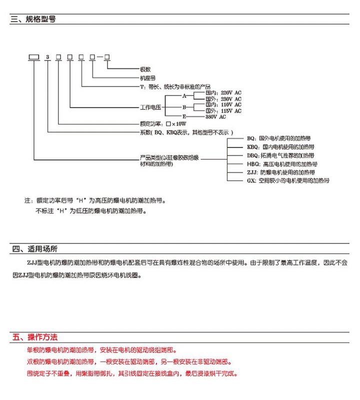 防爆電機防潮加熱帶
