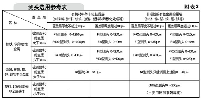 主機、N測頭或 F測頭、鐵或鋁基體、標(biāo)準(zhǔn)片、 數(shù)據(jù)處理軟件、AA型堿性電池 4、可選附件 其他用途探頭(見附表1) CTG-100高精涂層測厚儀可選測頭