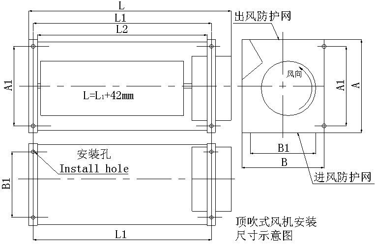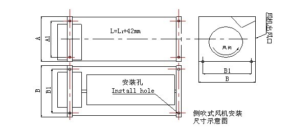 * 冷卻風機A、B區(qū)分:以產(chǎn)品銘牌方向電機安裝在左側(cè)為B型,右側(cè)為A型。 實例一:GFDD470-150 A 表示:干式變壓器橫流式冷卻風機、單相220V、頂吹式、風機總長度470mm、葉輪直徑150mm、電機在右邊; 實例二:GFD365-110/120 A 表示:干式變壓器橫流式冷卻風機、單相220V、側(cè)吹式、風機總長度470mm、葉輪直徑110/120mm、電機在右邊; 實例三:GFS470-150 B 表示:干式變壓器橫流式冷卻風機、三相380V、側(cè)吹式、風機總長度470mm、葉輪直徑150mm、電機在左邊; 接線示意圖頂吹式風機外形及安裝尺寸圖