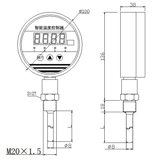 SB-W18智能溫度控制器是集溫度測量,顯示,輸出、控制于一體的智能數(shù)顯溫度測控產(chǎn)品。該產(chǎn)品為全電子結(jié)構(gòu),前端采用帶隔離膜充油壓阻式溫度傳感器,輸出信號由高精度,低溫漂的放大器放大處理,送入高精度的A/D轉(zhuǎn)換器,轉(zhuǎn)換成微處理器可以處理的數(shù)字信號,經(jīng)過運(yùn)算處理的信號控制兩路開關(guān),對控制系統(tǒng)溫度進(jìn)行測控。該智能溫度控制器使用靈活,操作簡單,調(diào)試容易,安全可靠。
