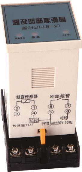 LK-BT3(TH)凝露溫濕度監(jiān)控器的主要功能: 一路凝露監(jiān)控。濕度過大或者將有凝露產(chǎn)生時,啟動負(fù)載,調(diào)節(jié)濕度至預(yù)設(shè)值。能對負(fù)載斷路進(jìn)行及時報(bào)警,方便遠(yuǎn)程控制。 技術(shù)特性 凝露啟控:88%RH5%RH(20℃時) 響應(yīng)速度:典型值<55 輸出:(1)控制:1倍工作電壓,額定功率阻性負(fù)載AC220v3A (2)報(bào)警:繼電器無源輸出,觸點(diǎn)容量AC22OV3A常開 安裝方式 (1)基座式:將8芯繼電器座固定在35mm導(dǎo)軌或通過安裝螺孔直接固定在安裝板上 (2)嵌入式:在安裝面板上開具45“x45"m孔,通過安裝支架將監(jiān)控器固定在面板上