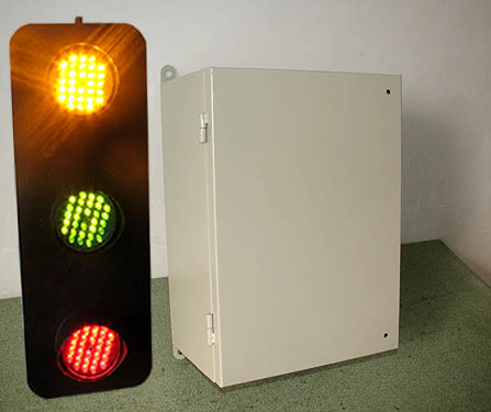 是專門用于實(shí)時(shí)監(jiān)視行車、龍門吊等起重設(shè)備的三相電源的信號(hào)指示,以防止設(shè)備電源的缺相造成的不良后果。該產(chǎn)品采用LED進(jìn)口超度發(fā)光二極管制成,分三種顏色( 黃、綠、紅)分別指示電源的三相,可視距離約300米,壽命大于十萬小時(shí),優(yōu)于其他同類產(chǎn)品。外殼采用電鍍冷軋板及靜電粉末噴塑工藝,美觀精致,室外防腐性能極佳。 功率低,耗電省。燈體可與滑觸線并排安裝,也可安裝在兩端墻體上,可任意調(diào)整角度,大視角為150度,行車駕駛員和地面工作人員都可看到。防護(hù)等級(jí)為IP56。
