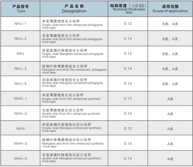 煅燒云母帶厚度:0.10、0.12、0.14