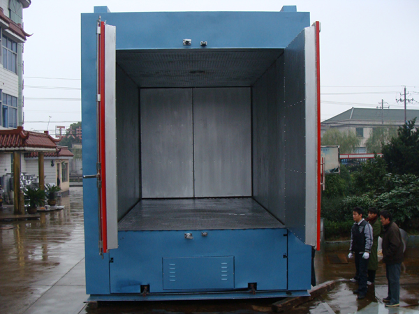 臺(tái)車烘箱底部鋪設(shè)軌道,軌道主要分為槽型軌道、角鐵軌道、工字鋼軌道。槽型軌道配置定向輪和萬向輪,小車?yán)龊罂扇我廪D(zhuǎn)向;角鐵軌道采用V型輪,工字鋼軌道采用H型輪或┝型輪,選用角鐵軌道和工字鋼軌道,小車只能在軌道上直線運(yùn)行。臺(tái)車烘箱分為手推臺(tái)車烘箱和自動(dòng)進(jìn)出臺(tái)車烘箱,可根據(jù)所烘產(chǎn)品重量不同選用手動(dòng)驅(qū)動(dòng)、鈍齒條驅(qū)動(dòng)、輥排驅(qū)動(dòng)、牽引小車驅(qū)動(dòng)等不同臺(tái)車驅(qū)動(dòng)方式。