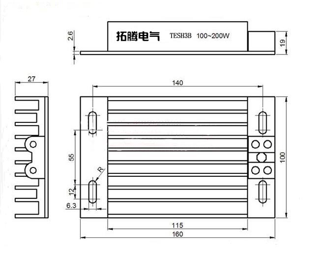 注:(1)帶風扇型不包含風扇消耗功率。(2)測試環(huán)境溫度t=25℃,垂直安裝且端子置于下部,空氣自然對流條件良好的室內(nèi)(無風扇情況下)。功率越大表面溫升越。(3)交流和直流通用。