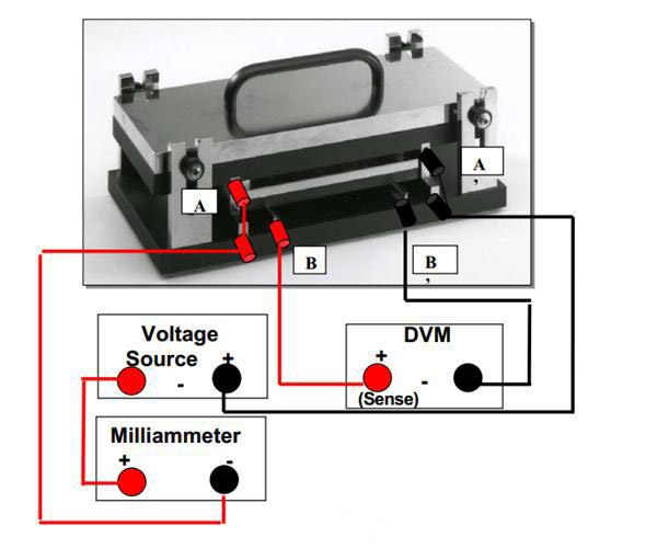 在測量導(dǎo)電材料電阻率若采用三電極或二電極測量時會因為電極與被測量材料表面電阻而影響測量準(zhǔn)確性,本裝置采用四電極(四點探針或四探針)法測量導(dǎo)電和防靜電材料體積電阻率,可以克服表面接觸電阻造成的誤差影響,