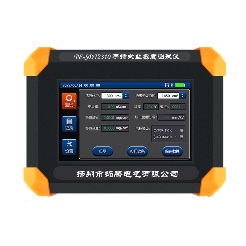 本設(shè)備為便攜式檢測設(shè)備,主要用于檢測電力線路中絕緣子的污穢附著情況。該儀器可測量絕緣子鹽密度,本設(shè)備簡化了絕緣子污穢檢測的流程,非常適合巡檢現(xiàn)場和實驗室使用。電力線路中絕緣子的污穢程度可以通過鹽密度(ESDD)來表征。本設(shè)備內(nèi)置了常用溶液體積、絕緣子型號,方便用戶直接調(diào)用,絕緣子型號與表面積支持用戶自定義。增加數(shù)據(jù)保存功能,可保存1000組測試數(shù)據(jù),本機查看數(shù)據(jù),支持U盤導(dǎo)出數(shù)據(jù),導(dǎo)出數(shù)據(jù)可以EXECL打開,方便用戶在計算機上查看。具備藍牙打印功能,通過連接外置藍牙打印機可將測量結(jié)果打印出。