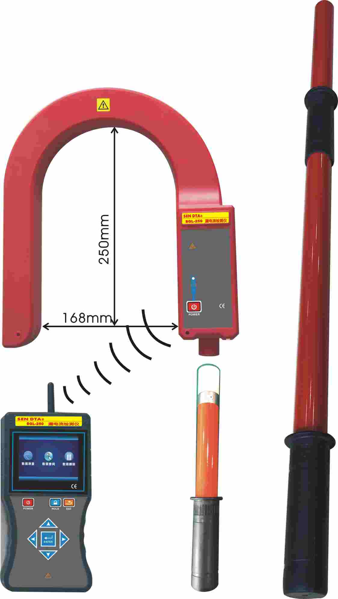 SGL-250鉤式漏電流表由超大口徑的鉤式檢測(cè)儀、無線接收器、伸縮絕緣桿等組成。能在線測(cè)試60kV以下的裸導(dǎo)線或匯流母線,或110kV