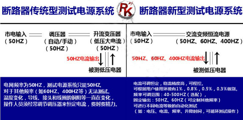 ● 操作人員須經常調節(jié)調壓器來恒定電流,費時費精力,而且精度是無法與本電源相比的,低壓電器生產中,須對電流進行校驗、老化的項目上,如熱繼電器動作電流的整定,空氣開關熱脫扣電流的測量等。